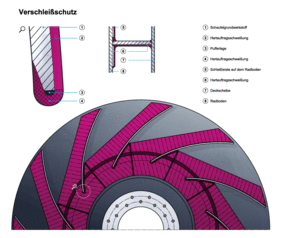 Ventilatorenfabrik Oelde provides process fans with special wear protection before they leave the factory. The company will also repair parts which are liable to wear on fans of any make which are already in service.