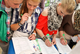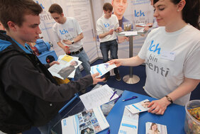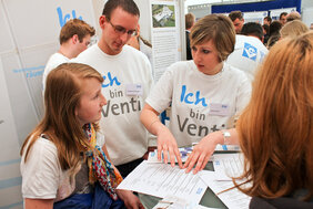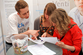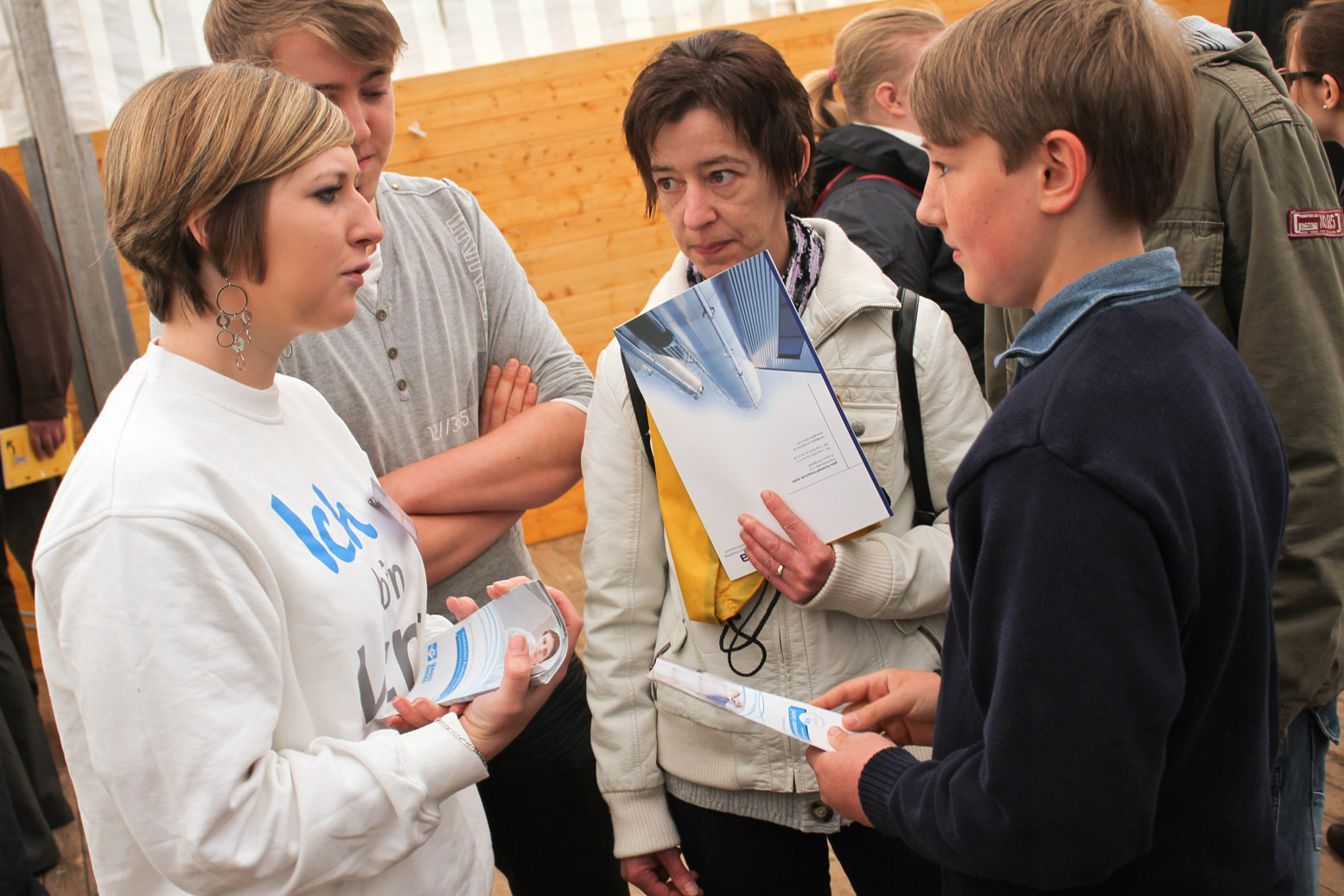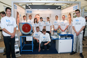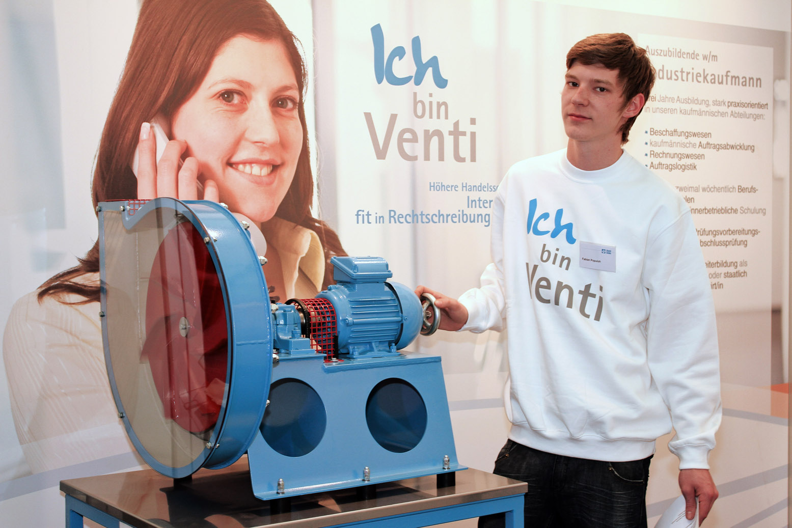 "Join in": Many young people followed this invitation on 11th and 12th May 2012. More than 1,000 secondary school students from Oelde and Ennigerloh visited the Recruiting Trade Fair "Join in" in the Four Seasons Park in Oelde to gather information about opportunities for vocational training and further education. Almost 60 exhibitors from industry, trade, service providers, administration and further education provided the students with an insight into the world of work. Venti Oelde apprentices and trainees together with their training supervisors furnished students and parents with information about training in the jobs "Industrial Business Administrator", "Systems Mechanic" and "Technical Product Designer". Highly motivated, the apprentices explained construction, technology and the individual production stages using as an example a fan they had made themselves. They also emphasized the hands-on training at Venti Oelde, answered many questions and talked about their own experiences in their working life. Venti Oelde provides a solid training for young people and, therefore, good prospects for their further working life.