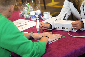 There were information stands where employees were given information about the correct way to protect their skin and where skin moisture was measured. Body fat analyses and determination of the body mass index provided information about one’s personal condition.