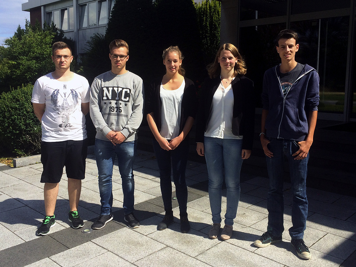 Sound training is the first step on the way to a successful career. On 3rd August 2015, five trainees began their apprenticeships at Venti Oelde as technical product designers, industrial management assistant and machinists. Thanks to a varied training program, they will prepare for the demands of their jobs. The photo shows (from left to right) Niklas Riedel, Janosch Bollmers (both machinists), Svenja Renner (industrial management assistant), Kristin Hoppe and Roman Ostkamp (both technical product designers).