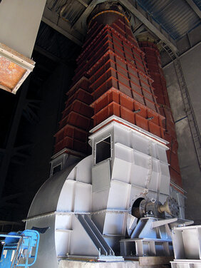 The task was to replace the existing, out-of-date fans with new high-performance machines. The time-frame did not permit modifications to the existing foundations. The inlet and outlet ducts were adapted to the existing ducting system. Removal of the old fans and installation of the new fans and their relevant ducting was included in the scope of performance. Duct insulation was modernized.